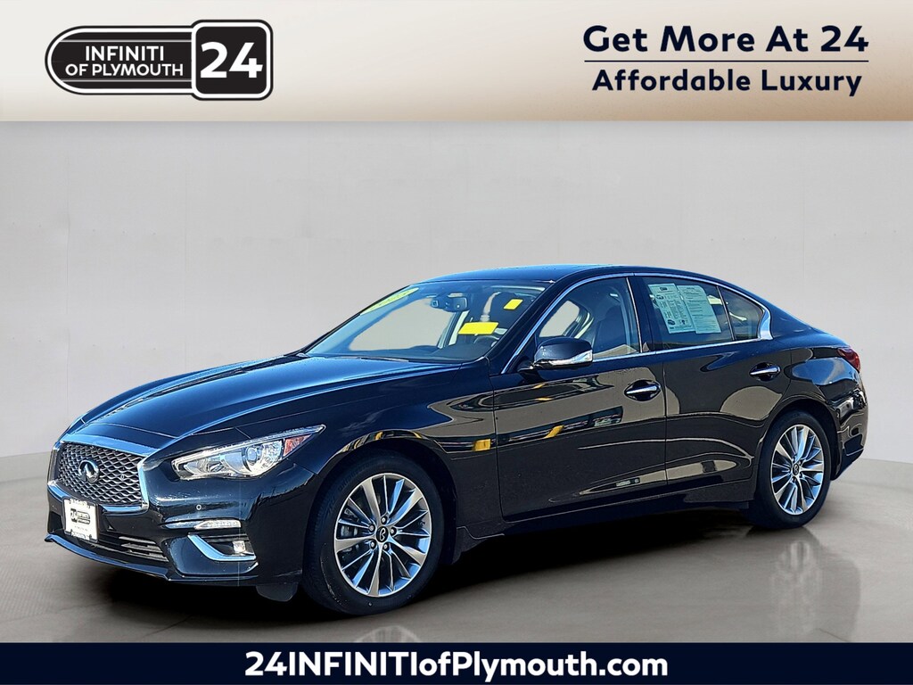 Experience luxury and performance with this low-mileage Black 2023 INFINITI Q50 AWD Luxe Sedan, boasting just 8,667 miles! Enjoy exhilarating drives with a 3.0L Twin Turbo V6 engine producing 300hp, paired with an intelligent AWD system and a smooth 7-speed shiftable automatic transmission. This Q50 is loaded with top features, including Wireless Apple CarPlay and Android Auto, a dual touchscreen infotainment system, Bose premium audio, and built-in Wi-Fi hotspot. Safety comes first with Front Automatic Emergency Braking, Adaptive Cruise Control with Stop & Go, Blind Spot Warning, Rear Cross Traffic Alert, and a Surround View Camera System. Stay comfortable with heated leather-trimmed seats, a heated steering wheel, power moonroof, and dual-zone automatic climate control. The stylish aluminum alloy wheels and LED headlights complete the sophisticated look. Don't miss your chance to own this stunning, tech-filled sedan with the peace of mind of low mileage. Schedule your test drive today!Includes: Warranty available on all eligible INFINITI models up to five years / 60k miles (whichever occurs first) from the vehicle's original in-service date. [*]Warranty Includes: [*]$0 deductible167-point inspectionUp to six year / 75k mile (whichever occurs first) or six year / unlimited mile limited warrantyOne year of pre-paid maintenance (included within the first year of ownership)Up to five days of car rental reimbursement at a maximum of $50 per day